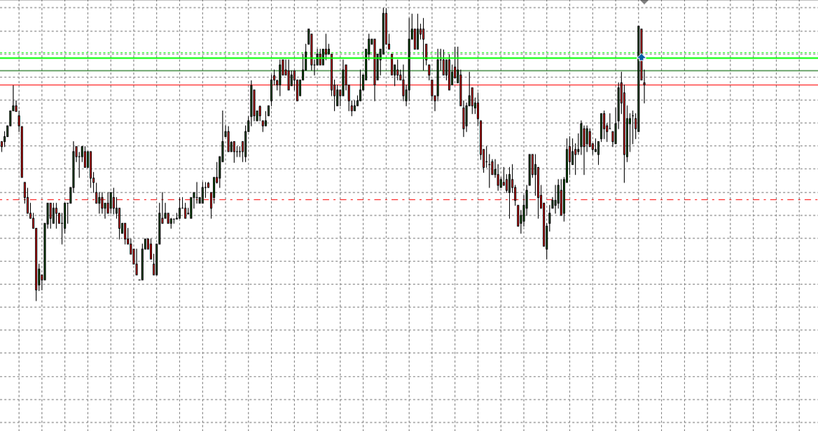 Dunkelgrüne Linie: Von mir markiertes VTH (Vortageshoch)