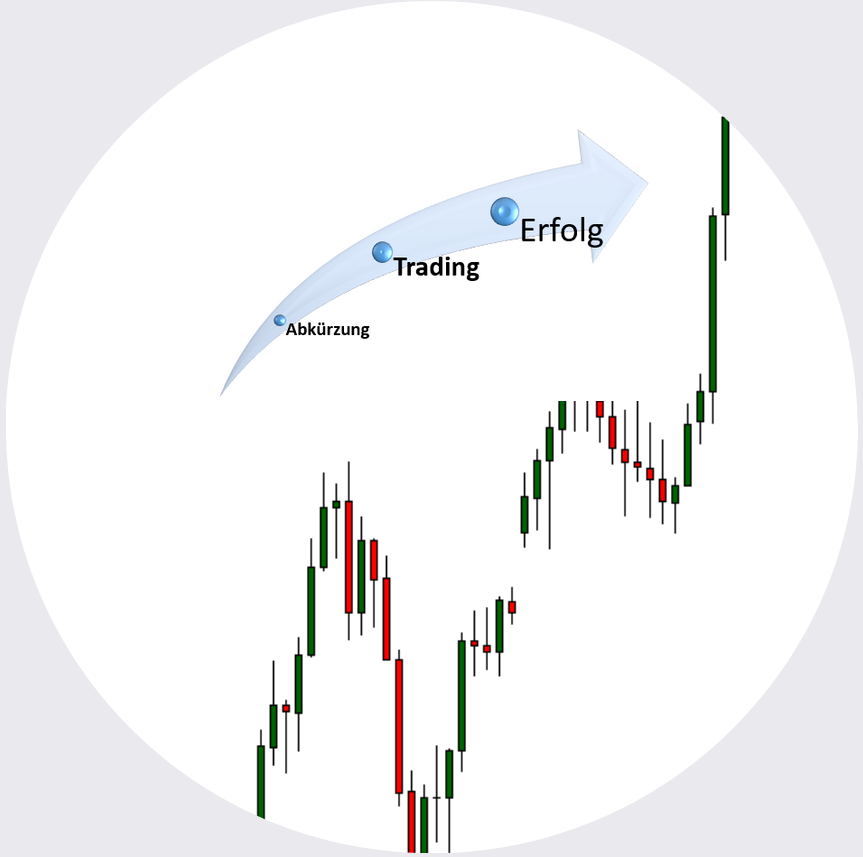 Diagramm eines Handelssystems mit einer Aufwärtsentwicklung, Pfeil, der den Erfolg markiert, mit Begriffen wie Abkürzung, Trading und Erfolg, um den Weg zum Erfolg im Handel zu visualisieren.
